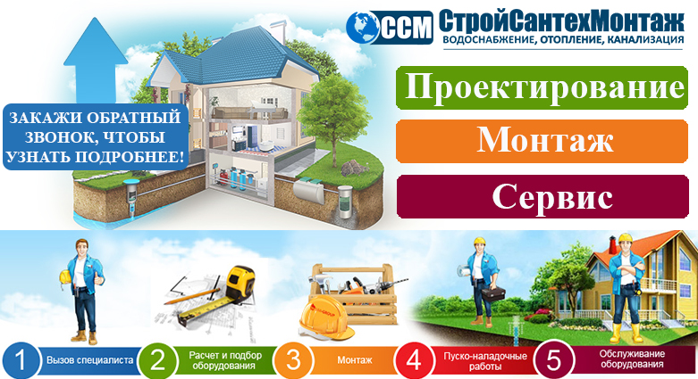 Мы предлагаем Вам полный перечень услуг под ключ! От проектирования до пусконаладки и сервесного обслуживания систем водоснабжения, отопления, канализации.